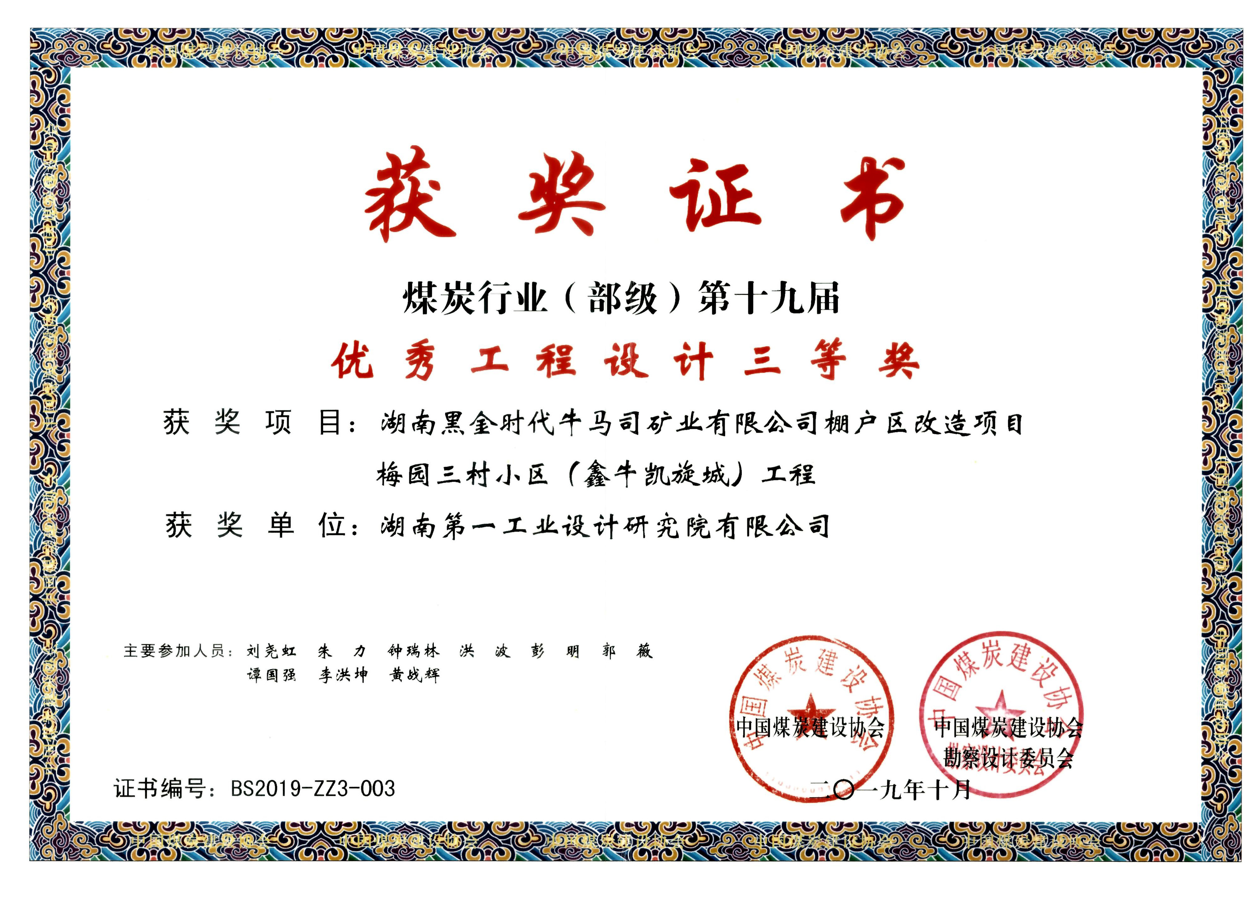 湖南省優(yōu)秀設計表揚金獎(1984)